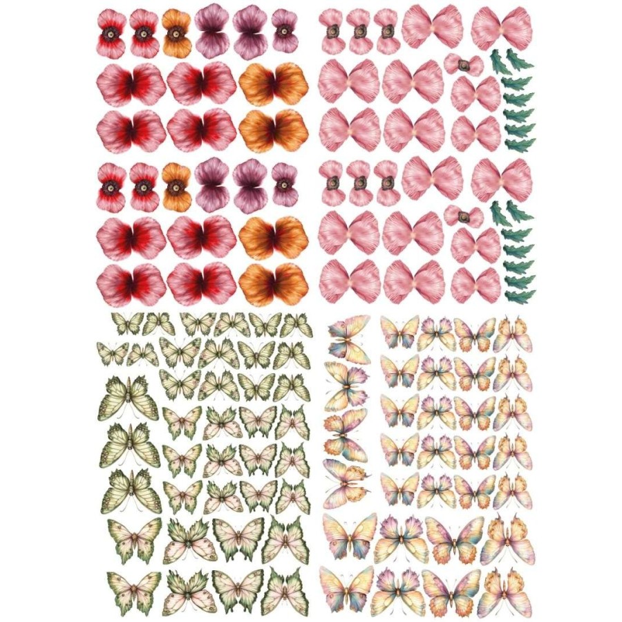 4 hojas de flores y mariposas de aluminio "Amapolas"