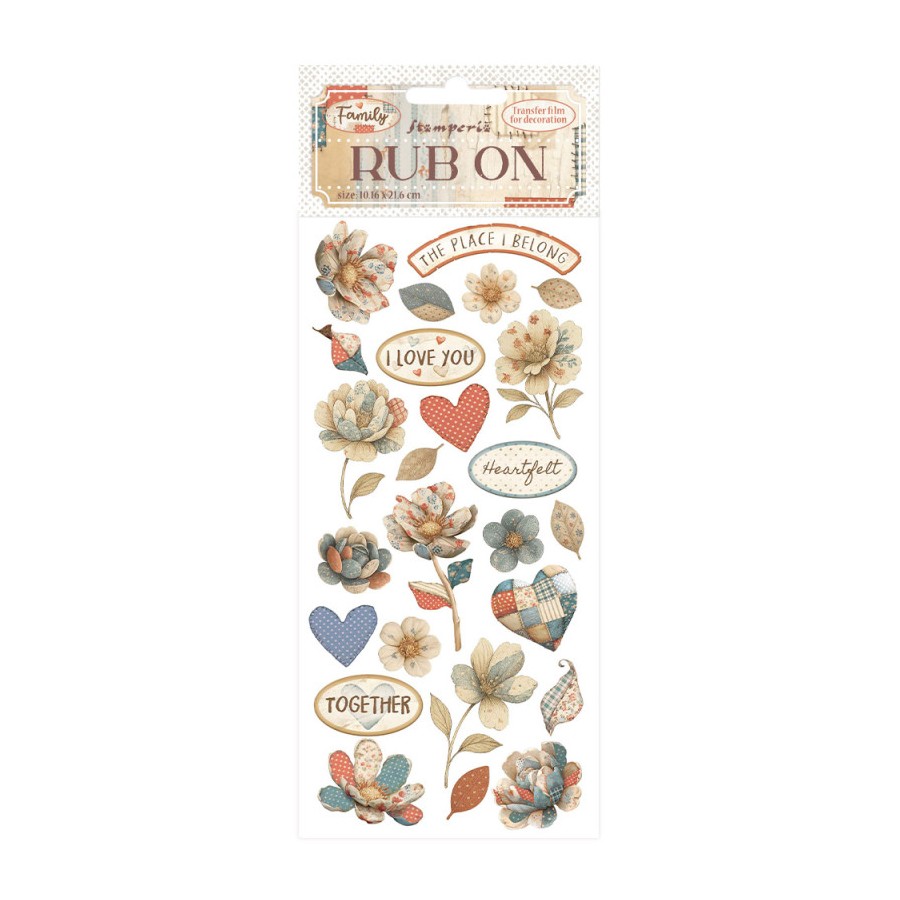 Rub-on Stamperia 10.16x21.6 cms. Family Patchwork flowers