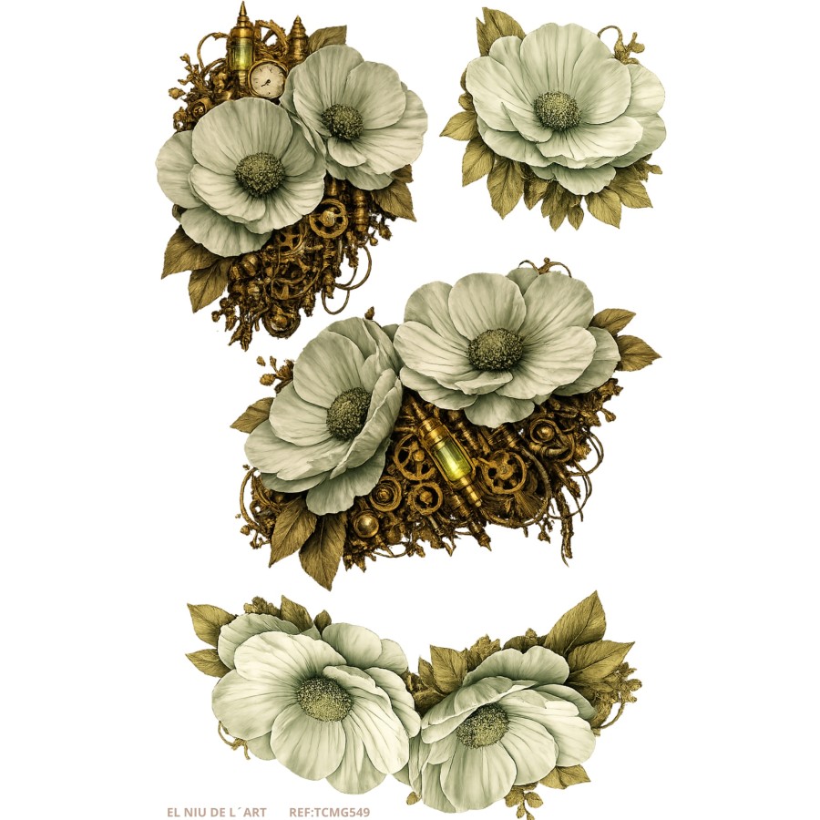 Aplicación: colocar el transfer en el soporte, poner un papel de horno y planchar a temperatura media  1 minuto aproxi., dejar enfriar, levantar la pelicular protectora y volver a planchar con papel de horno por encima 5 segundos, barnizar si fuera necesario.