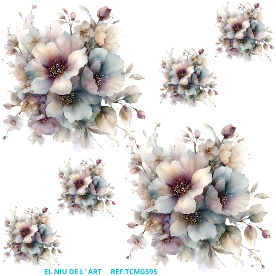 Aplicación: colocar el transfer en el soporte, poner un papel de horno y planchar a temperatura media  1 minuto aproxi., dejar enfriar, levantar la pelicular protectora y volver a planchar con papel de horno por encima 5 segundos, barnizar si fuera necesario.