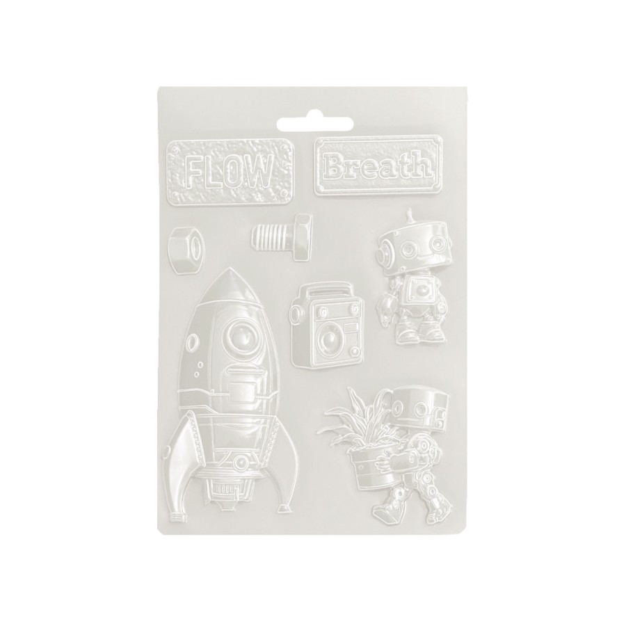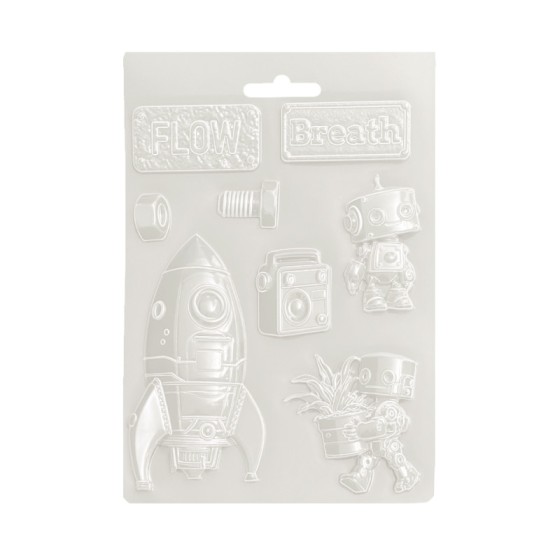 Stamperia Soft Mould A5 A new Beginning nave espacial y robot