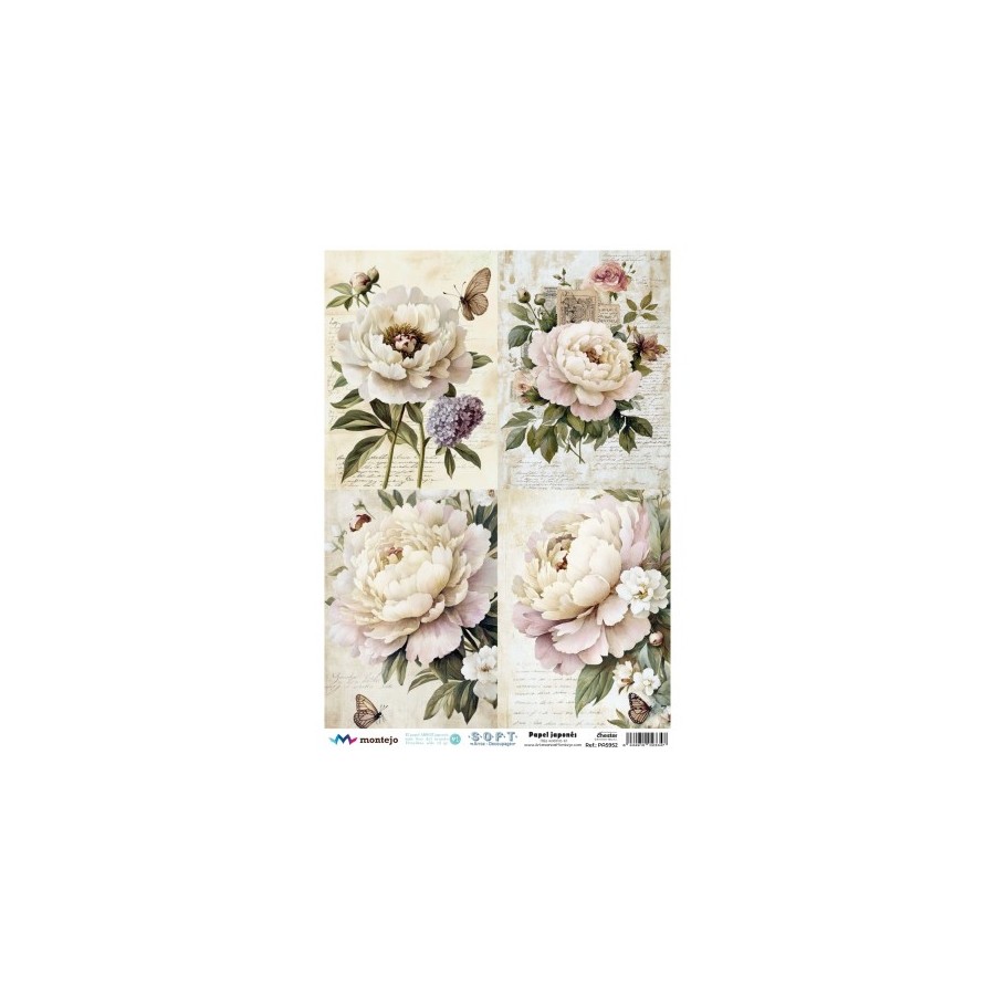 Exclusivo papel de arroz diseñado y fabricado en España con muchísimo cariño y esmero. Perfecto para usar en trabajos de decoupage y decoración.