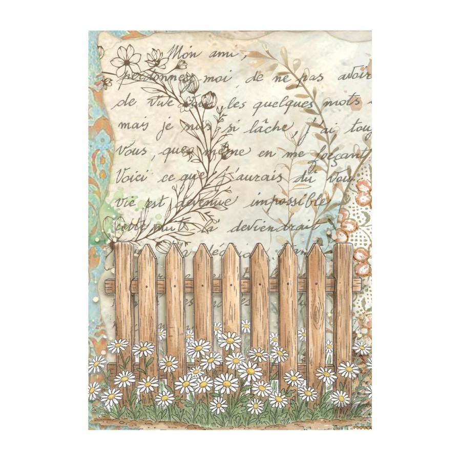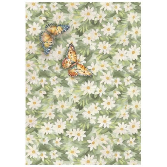 Papel de arroz decorado diseñado por Stamperia con un gramaje muy bajo cuya ligereza y adaptabilidad a casi cualquier superficie lo hace apto para cualquier técnica de decoupage. Permite forrar tanto por el interior como del exterior en superficies planas y redondas. Sobre el cristal es posible mantener la transparencia, sobre tela mantener la suavidad y sobre el mobiliario permite decorar el forro interior. Incluye una ilustracion de una esfera de reloj con rosas rosas.