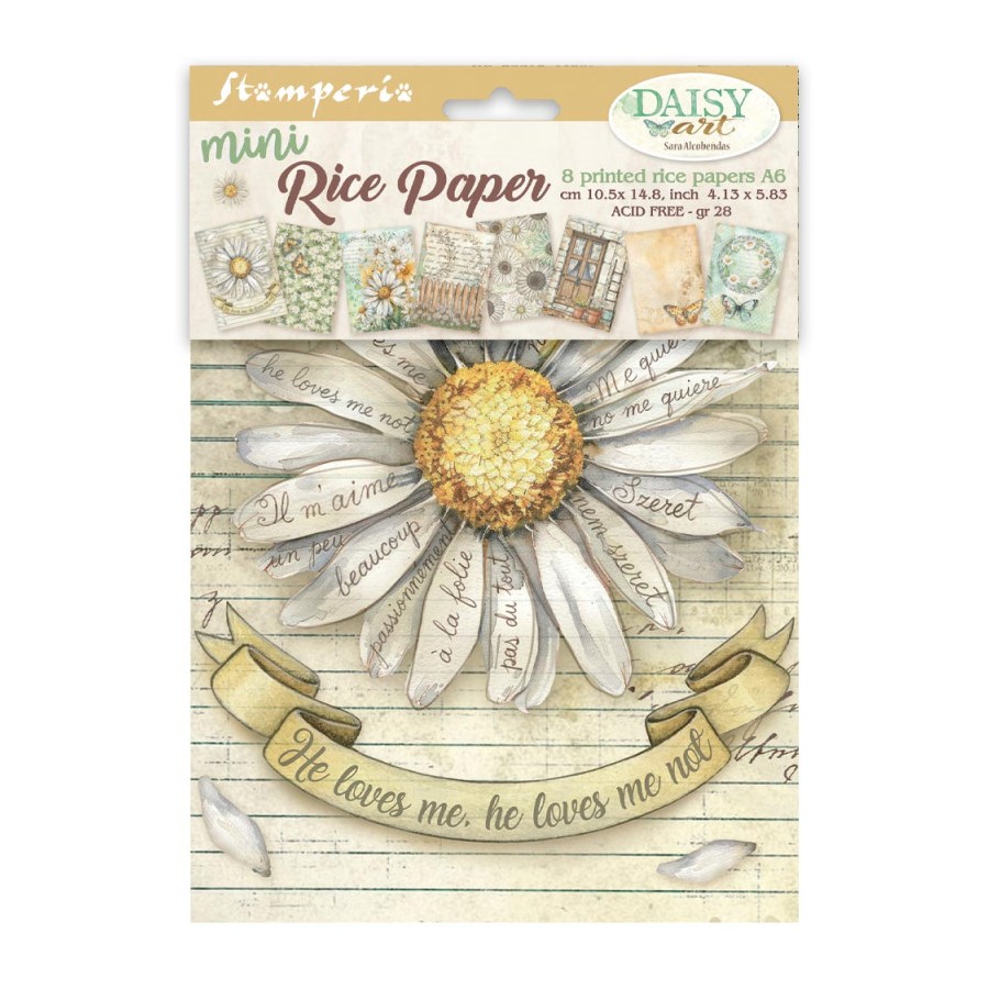 El papel de arroz es igual de fino que una servilleta, pero mucho más resistente. Su composición lleva unas pequeñas fibras, lo que lo hace más atrativo su uso en la decoración de todo tipo de objetos. Su decoración ya viene impresa con motivos especiales, que podemos utilizar para objetos de madera, cristal, papel, tejas, telas, acetatos, escayola, porcelana o cualquier otro soporte que se nos ocurra. Se pega con cualquier pegamento utilizado con la técnica de decoupage, o con el médium para servilleta.
