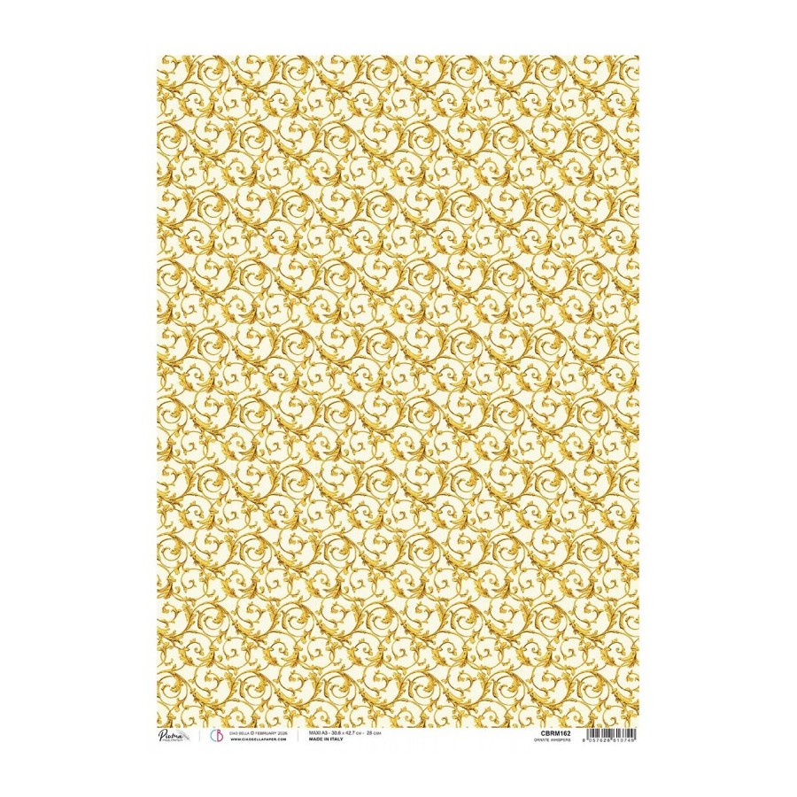 Papel de arroz 100% ilatiano (PIUMA RICE PAPER). El diseño y la impresión se realizan completamente en Italia con materiales certificados, eco compatibles. Papel de arroz de alta calidad, suave y resistente, impreso sólo con pigmentos naturales con base al agua. Libre de ácido y lignina. Perfecto para Scrapbooking, Decoupage y MixMedia. Gramaje 28 gr/m2. Tamaño: 22x32 cm.