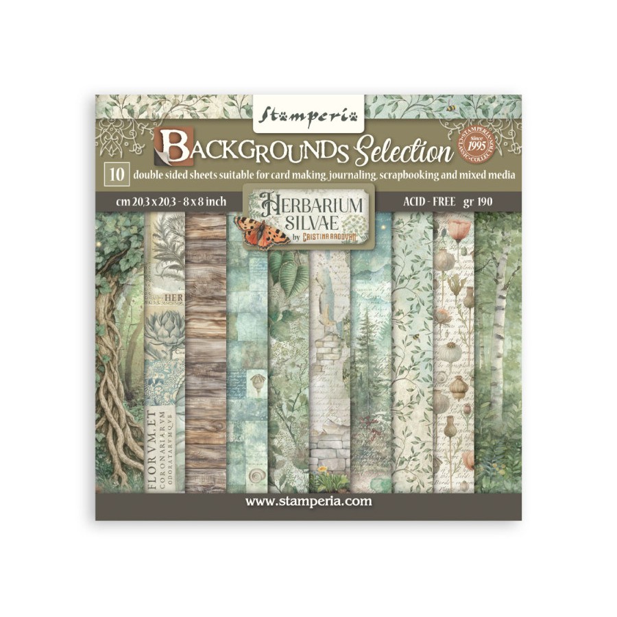Contiene 10 papeles de doble cara más 2 cover back, libres de ácido y ligninas. 10 diseños distintos.