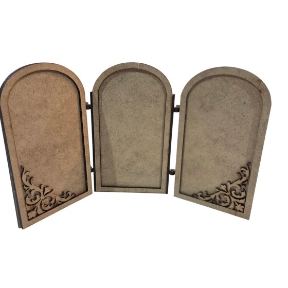 El conjunto se compone de 3 piezas de madera dm y una pieza de acetato. Formando una pieza de 6,3mm de grosor, con un hueco de 2mm para introducir los elementos decorativos.
