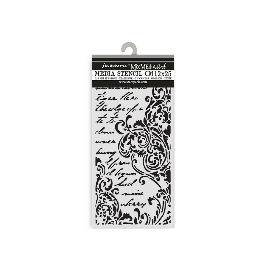 Stencil de material flexible y resistente, ideal para técnicas con texturas y spray.